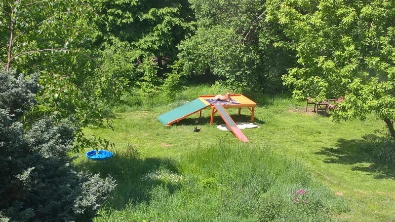Afterwards she took us to the Hoomans’ house. We weren’t too comfortable at first, especially with those dogs. It took quite a while for them to get used to us, but “David” in particular had already become friends with Dad and the two of them had already gone hunting mice together.[A fox was standing on our property and was not put off by the fact that “David” was standing behind the fence and barking at him. David bit through the fence and ran after the fox. On the surveillance videos you can hear an animal squeaking. Then about 30 seconds pass and you can see the two of them wandering along our property side by side. The fox continued to come by every day after that. However, for various reasons we will not publish the videos]