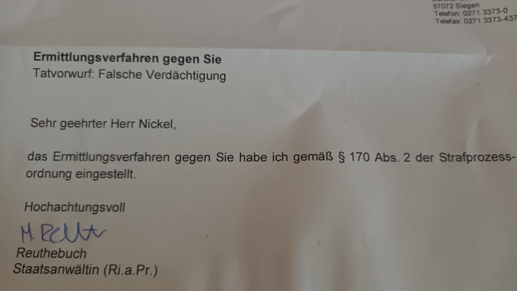 Ich bin ehrlich, ich weiss gar nicht mehr, worum es da überhaupt ging, weil fast jeden Monat irgendeinem Spinner irgendwas einfällt, was er für strafrechtlich relevant hält. Liest man sich die Begründung der Staatsanwaltschaft durch, dürfte hier seitens des Anzeigenerstatters wohl selbst eher eine falsche Verdächtigung im Raum gestanden haben.
